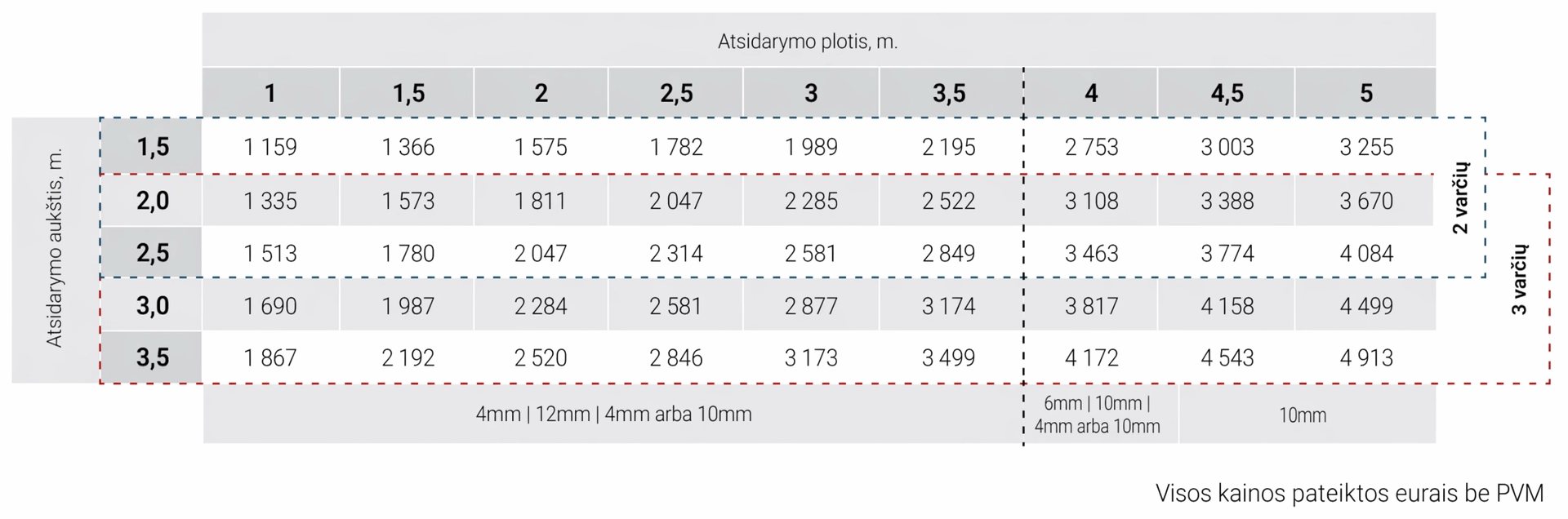 Stiklojuma biezums ir 4 vai 6 mm, bet gaisa kameras platums – 10 vai 12 mm, ar uzlabotām siltumaizsardzības īpašībām (ļoti efektīvs gaisa kondicionēšanai un telpu apsildīšanai). Sistēma nodrošina labu aizsardzību pret vandālismu. Maksimālu redzamību garantē 30 mm augstais horizontālais alumīnija rāmis un tas, ka nav vertikālo statņu. Automātiska vadība nodrošina komfortu un ekspluatācijas ērtumu.